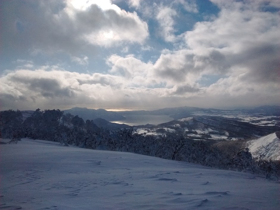 IMG_20151231_132219816 ← Précédent Vue du plus haut sommet de Rusutsu sur le Lac Toya et l’Océan Pacifique.
